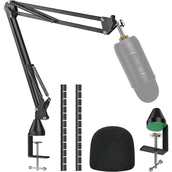 YOUSHARES Microphone Stand with Foam Cover - Mic Boom Arm Stand Pop Filter Compatible with Blue Yeti Microphone