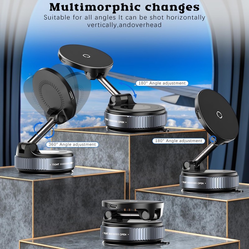 - Upgraded Magnetic Suction Phone Mount:Vacuum suction magnetic phone holder foldable cell holder is equipped with a strong N55 magnet, which is 200% stronger than a standard magnet. It can be precisely aligned with the internal magnet of the phone, even on bumpy roads or in emergency stops, the car phone holder can be firmly fixed