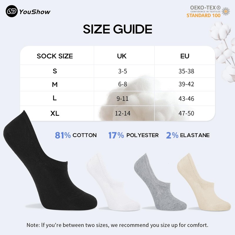 - Soft & Lightweight: YouShow invisible socks are made from 97% premium cotton and OEKO-TEX certified. They're soft, lightweight, and breathable to wick away sweat, keeping your feet fresh even on hot days
