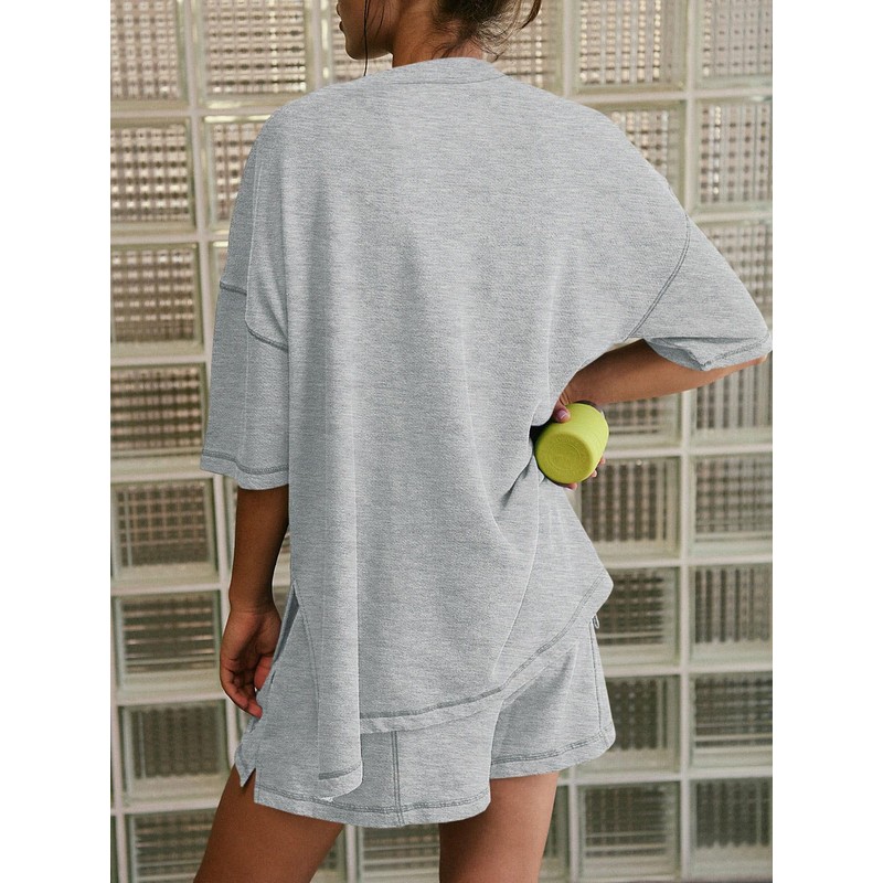 - Feature:Women's 2 piece lounge matching sets features V-neck, solid color, oversized, short sleeve tshirts tops with Elastic Waist shorts for a more comfortable and flattering fit to show off your pretty figure