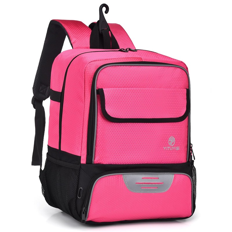 Youth Soccer Bag, Soccer Backpack with Ball Holder, Basketball Volleyball Football Handball Sports Backpack with Ball Compartment,Rose Red