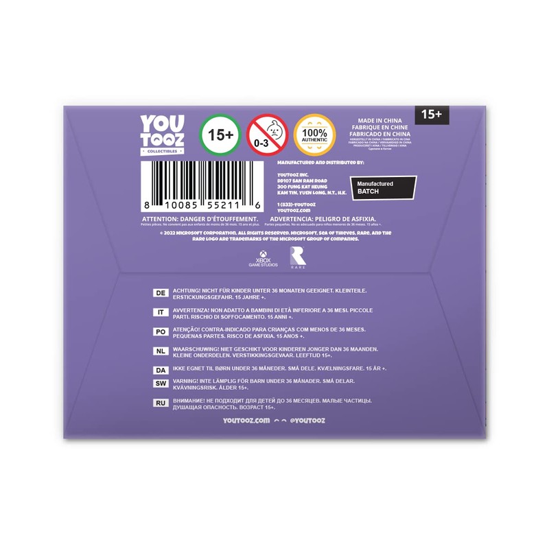 - Youtooz Packaging: The Youtooz Sea of Thieves collectible ships in a matte, embossed, protective sleeve.