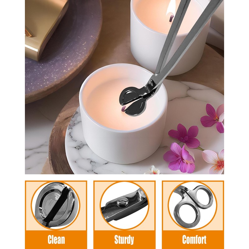 - Candle wick trimmer: Trim the wick (size: 0.5-0.8cm), and extinguish the candle every 2-3 hours. Trim the wick with the soft state when the candle extinguished. Don't trim after the wick has been cooling and carbonized, avoid breaking the root of the wick and affecting burning.