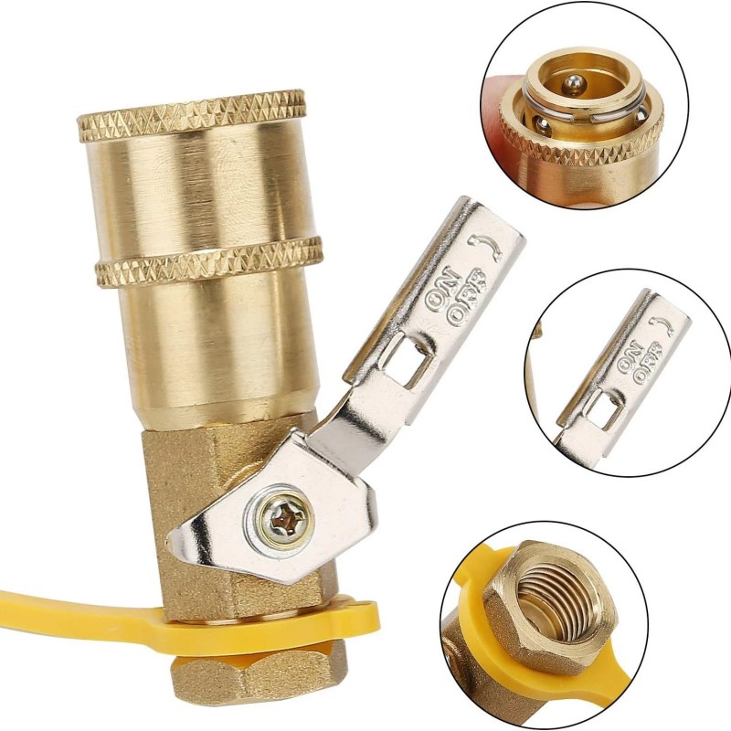 YOUUZ 1/4 Ball Valve Quick Connect Brass Adapter for Propane Gas Hose RV 5PCS