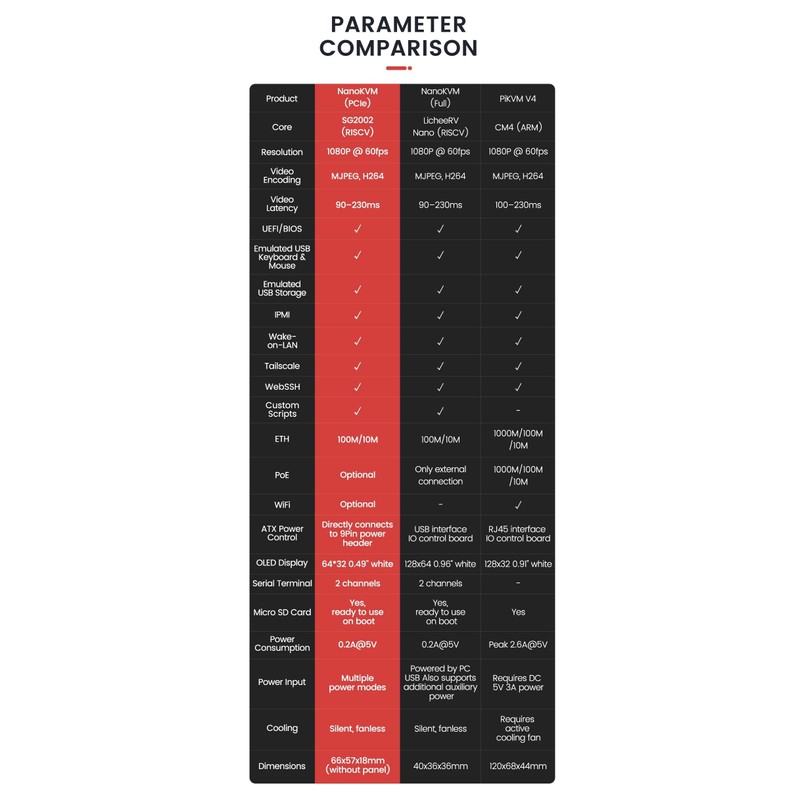 - [Product Description] The NanoKVM-PCle is an energy-efficient, versatile remote management solution for ATX PCs and 2U servers, featuring Ethernet/WiFi 6 connectivity and an OLED display.