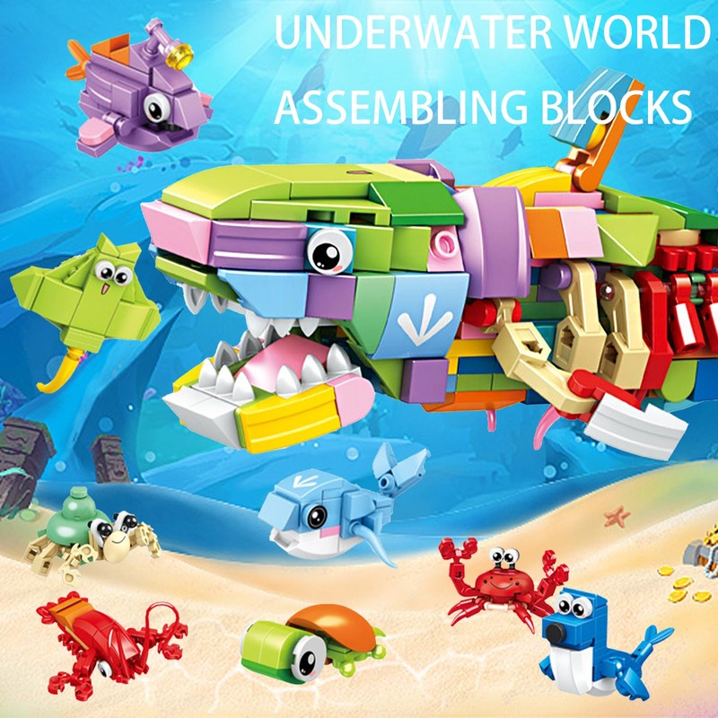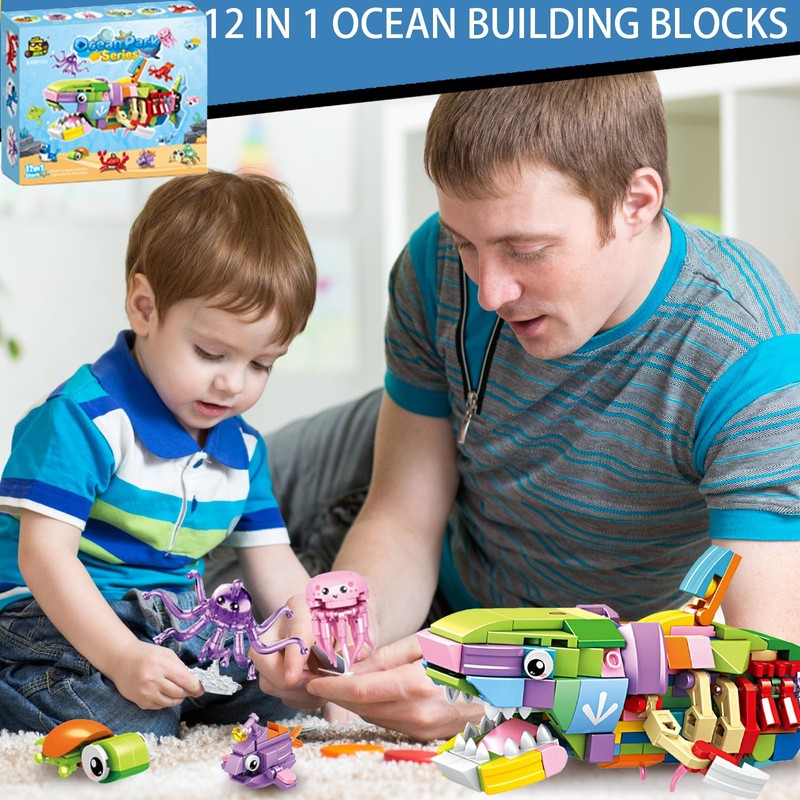 - 12-in-1 sea creatures building blocks set animals: Our set includes 12 packs of small aquatic creatures basic building blocks. These 12 basic building blocks can be assembled into 1 large building blocks. Add unlimited fun and fun.