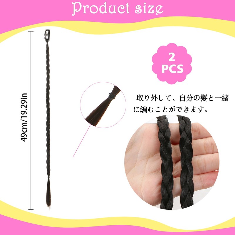 YOVOY Braid Hair Extension, Braid Wig, Bangs, Ponytail, Wig, Curly Type, Hair Extension, Hair Extension, Hair Extension, Ponytail, Dance, Recital, Party, Performance, Festival, Costume, Set of 2