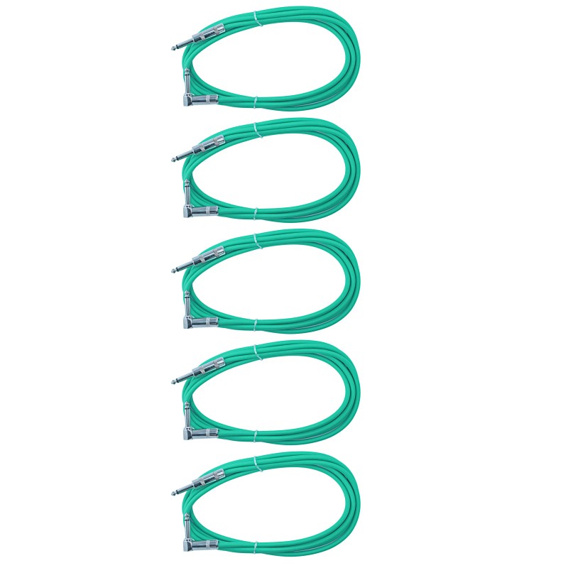 YOVUS 5GREEN 10ft Right to straight 1/4 shielded guitar instrument patch cord...