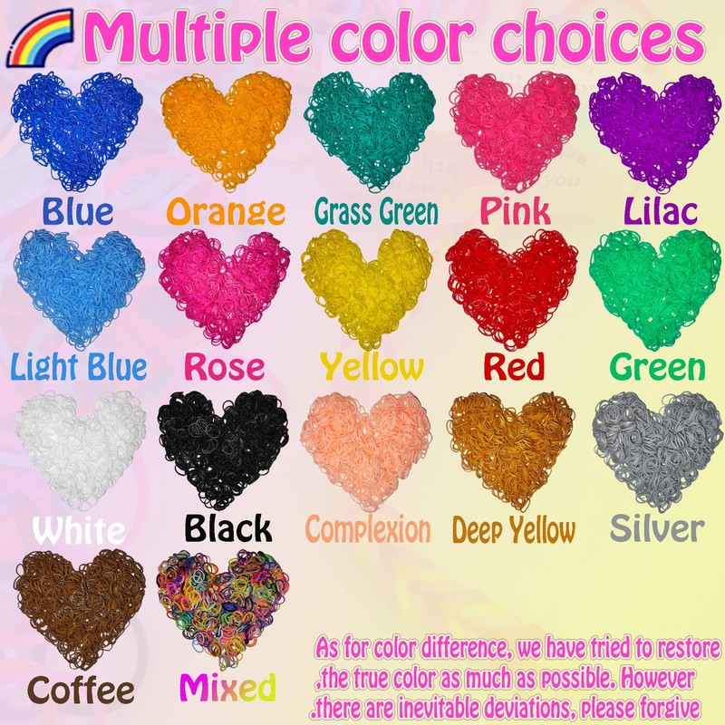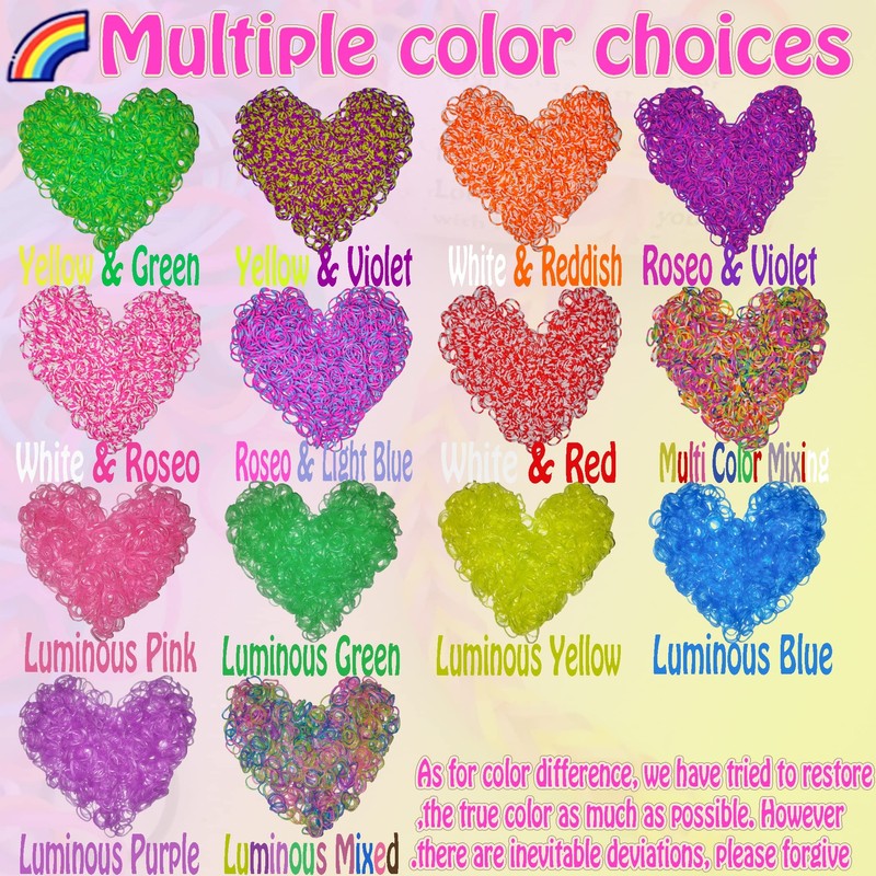 - 🌈【925Sets of Rubber Bands】:The Rubber kit includes 900PCS rubber bands, 24 S-Clips,1 Crochet,rich enough to meet your needs. Note: ①If you don't find the color of the rubber band you want, please feel free to contact us about whether it sells. ②There is little deviation between the color of the picture and the real object. We try our best to restore the most authentic product color.