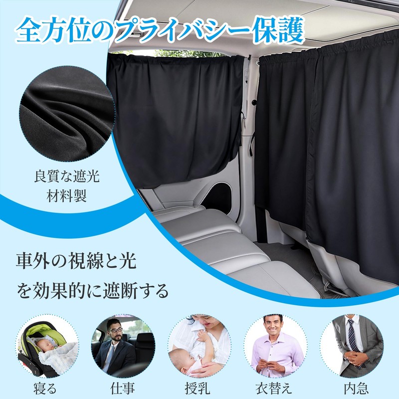 yowodana 車用 カーテン 間仕切りカーテン 日よけ 遮光率99.99% プライバシー保護 紫外線対策 uvカット 取付簡単 厚手 遮光断熱 トラック用品 カー用品 仮眠 車中泊 プライバシー保護