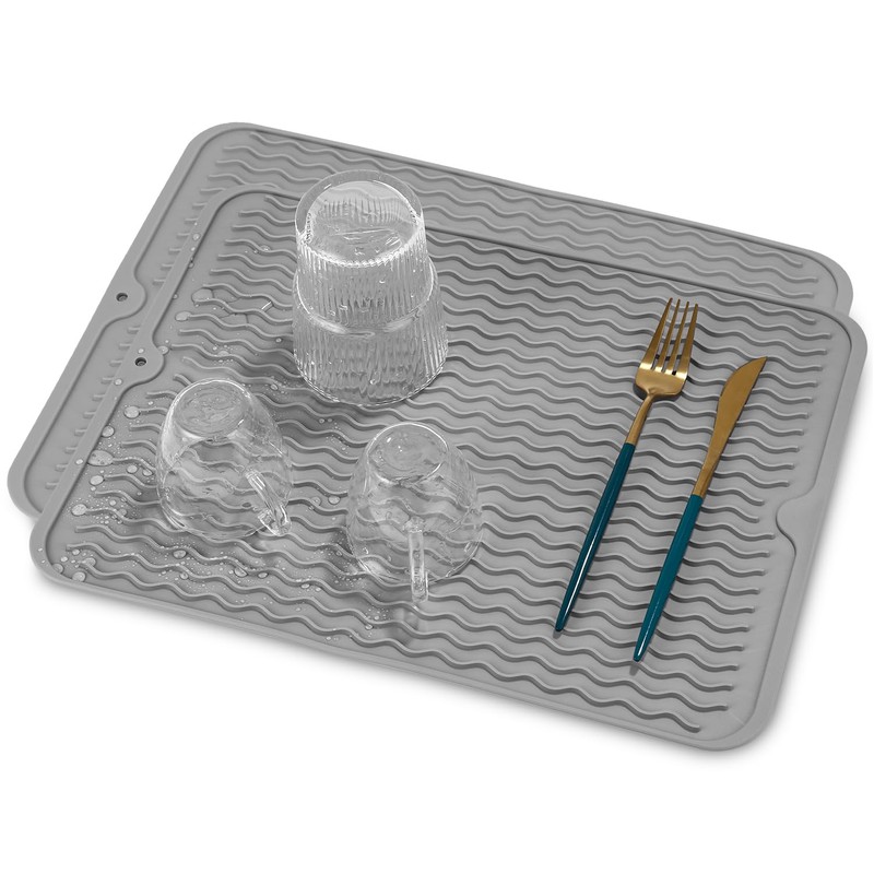 Yoxovo Pack of 2 Dish Drying Mat 40 x 30 cm, Dish Drying Mat Sink, Dish Drying Mat, Heat Resistant Non-Slip Sink Mat, Dish Drying Mat (Grey)
