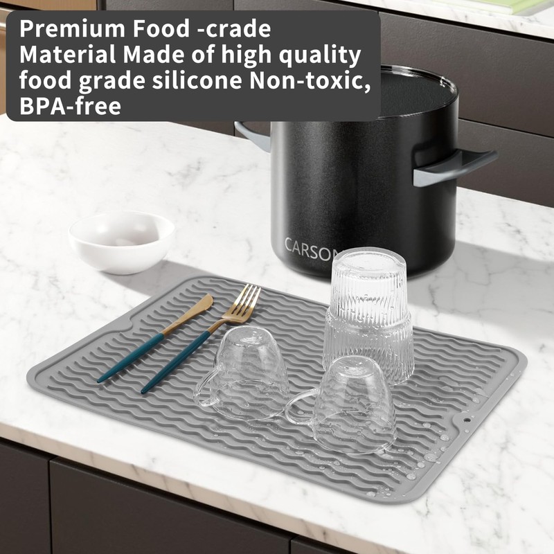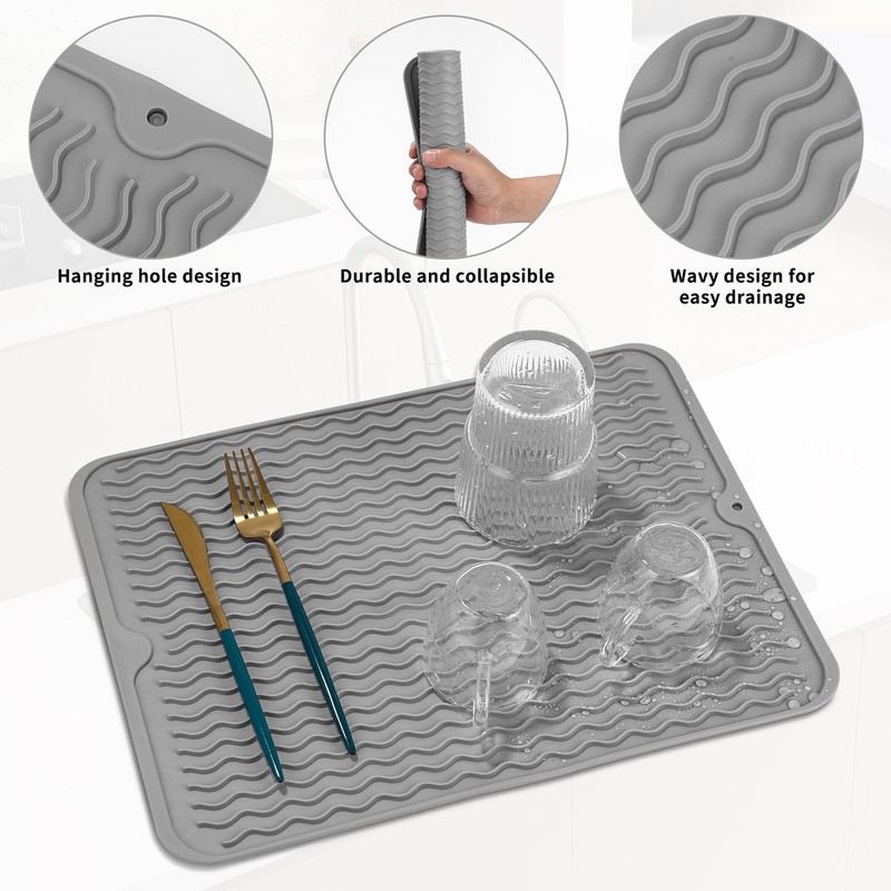 - Quick drying: the food-safe silicone mat kitchen with wave-shaped grooves promotes air circulation for quick evaporation. Raised edges prevent water leakage and keep the worktop dry - perfect as a drip mat dishes.