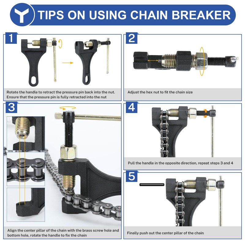- Easy Installation: Equipment with 420 chain breaker and chain tensioner adjuster. They can adjust the tightness of the chain, making it easy to disassemble, restructure, or clean the chain