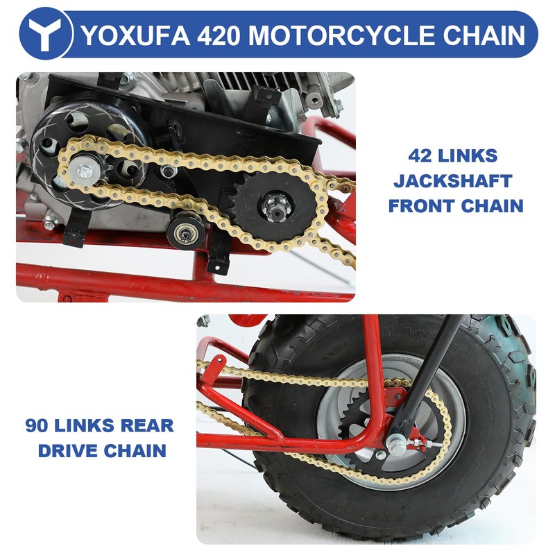 Fitment: 420 motorcycle chain is compatible with Predator 212cc 196cc 6.5hp engine Coleman Baja TrailMaster Massimo powersports mini bike