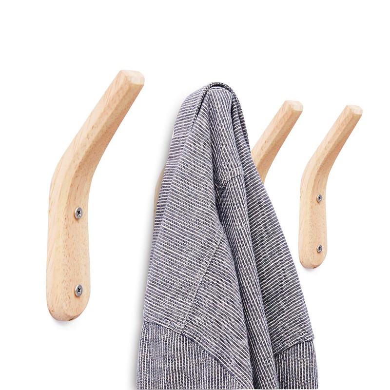 YOYAI Pack of 4 Wooden Coat Hook Wall Mounted Vintage Single Hook Hat Rack Towel Hanger Wall Organizer Simple Handcraft Decorative Wood Wall Hooks Heavy Duty