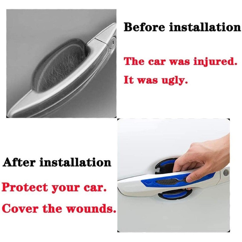 Door handle protection not only prevents scratching the nails when opening and closing the door but also has a carbon fiber handle and reflective strip around the door handle