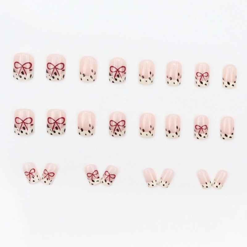 YoYoee Short Square Press on Nails French False Nails Cute Bow Tie Nails Tips Full Cover Nude Fake Nails for Women and Girls 24PCS