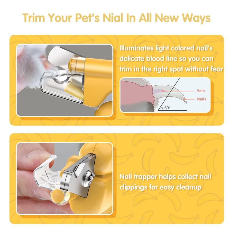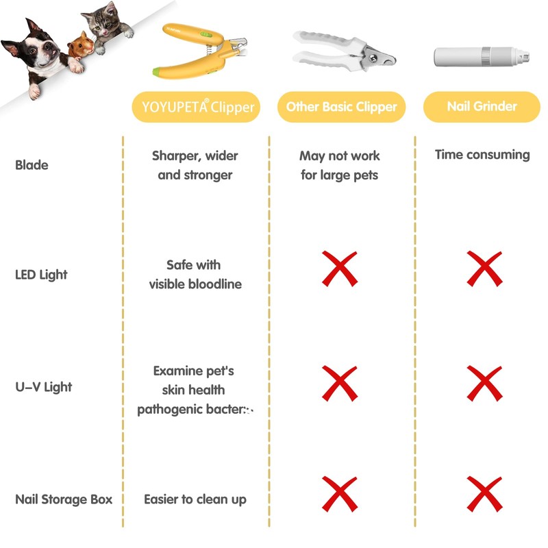 YOYUPETA Dog Nail Clippers with LED Light & Nail File – Professional at-Home Pet Grooming Kit, Razor-Sharp Claw Trimmer & Built-in File for Safe, Stress-Free Trimming on Dogs Cats. Yellow