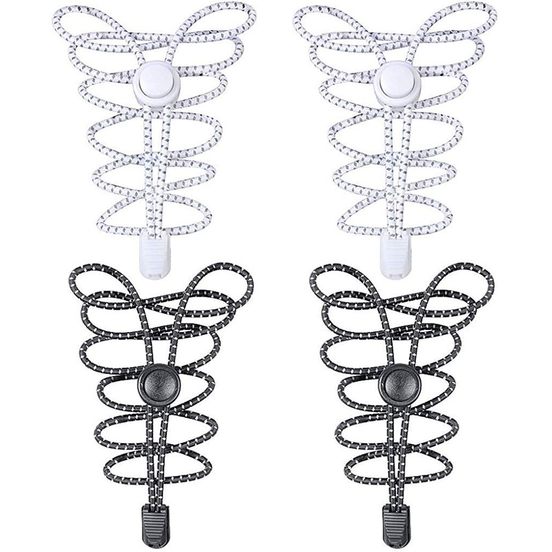 YOYUSH No Tie Shoe Laces Elastic Laces for Trainers White and Black Shoe Laces One Size Fits All for Kids and Adults (2 Pairs)