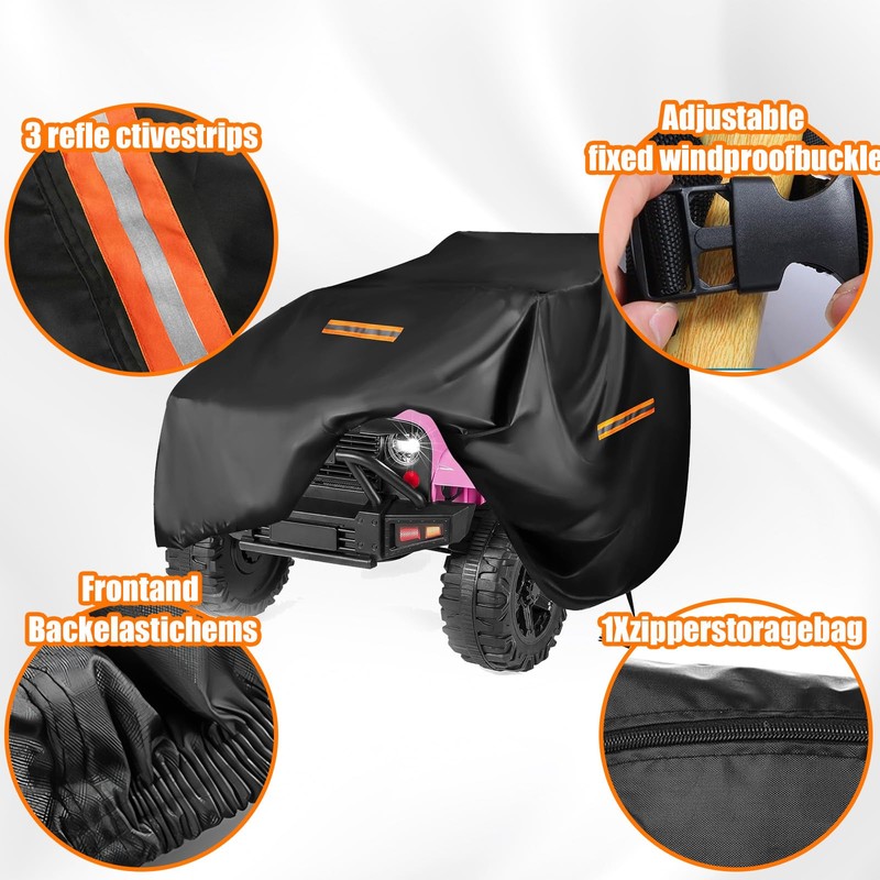 - Kids Large Car Toy Cover: Heavy Duty 420D Kids Electric Car Cover Waterproof Anti-UV Universal Car Covers with 3 Reflective Strips Windproof Buckle for Kids Electric Vehicle Motorbike Go Kart
