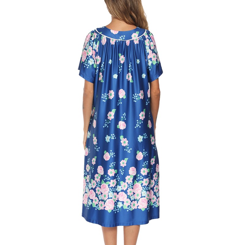YOZLY House Dress for Women Short Sleeve House Coat Mumu Duster Robe with Pockets, Blue Pink, Medium