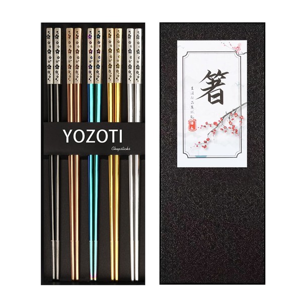 YOZOTI Stainless Steel Chopsticks, Reusable Chopsticks, 5 Pairs Dishwasher Safe Metal Chopsticks, Easy to Use, Square Lightweight Chopsticks Gift Set (Multicolor)