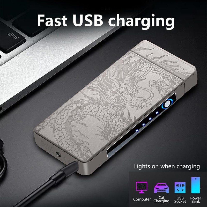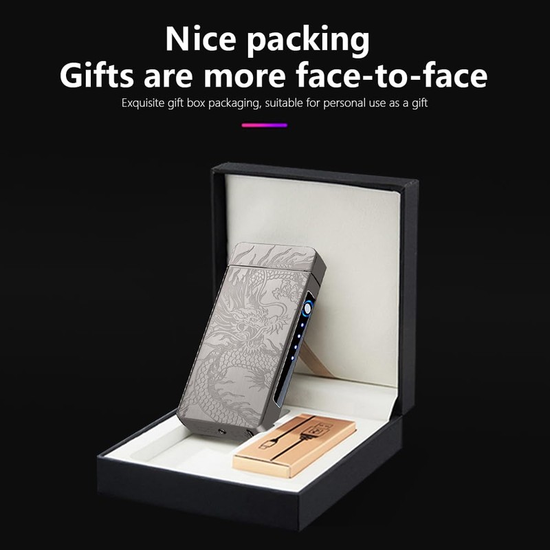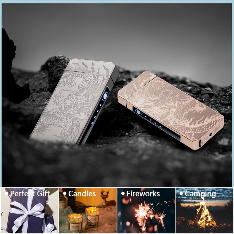 YOZWOO Electric Lighter Rechargeable, High Power Flame Arc Lighter, USB Lighters with LED Battery Indicator, Windproof Electronic Lighters for Candle Camping with Gift Box (Black Dragon.)