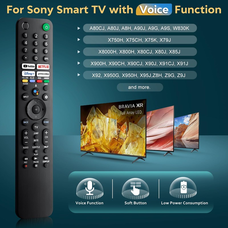 - 【Wide Compatibility】Replacement voice remote is compatible with a wide range of sony smart voice tvs, including A80CJ, A80J, A8H, A90J, A9G, A9S, W830K, X750H, X75CH, X75K, X79J, X8000H, X800H, X80CJ, X80J, X85J, X900H, X90CH, X90CJ, X90J, X91CJ, X91J, X92, X950G, X950H, X95J, Z8H, Z9G, Z9J and more.