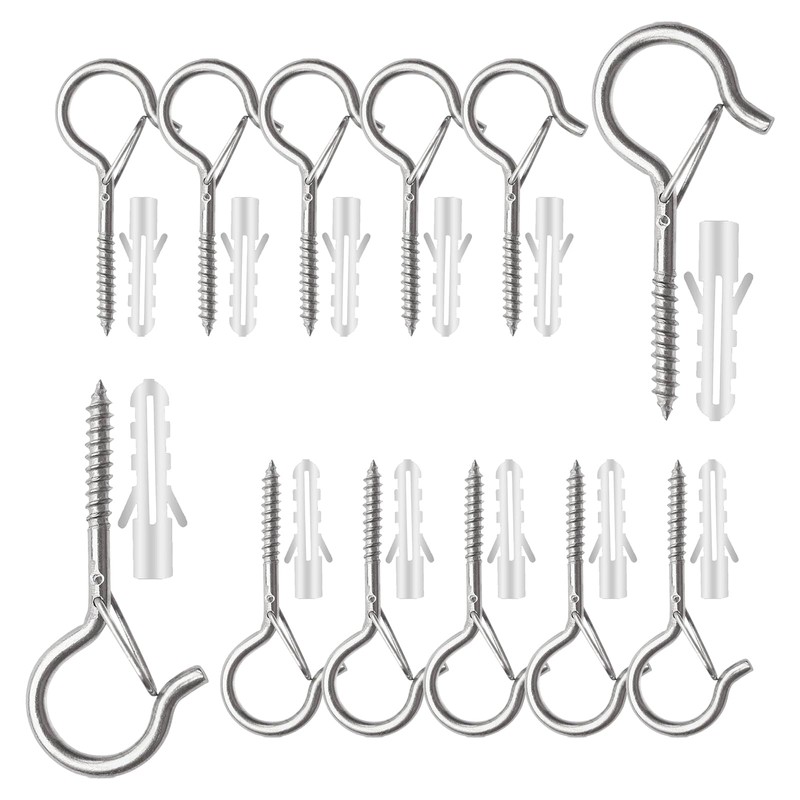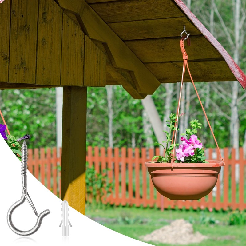 - ⚙️ Easy to install in a few steps: drill a pilot hole, insert a drywall anchor if necessary, and screw in the hook. Perfect for roofs, patios, decks, ceilings, walls, trees, fences - anywhere you want to hang safely.