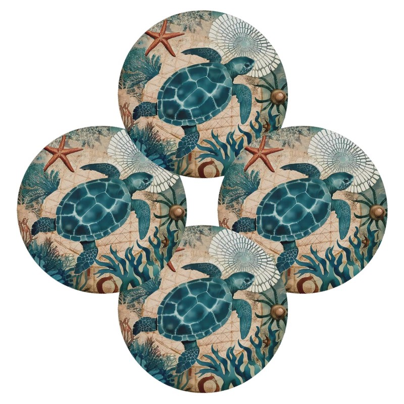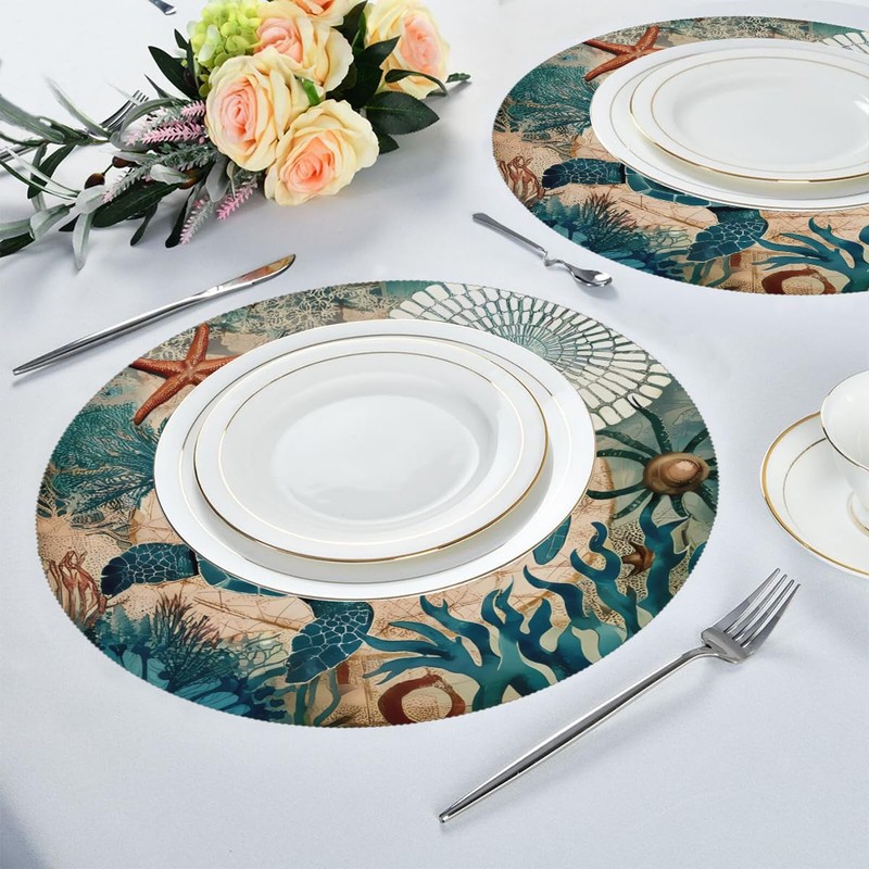YPPAHHHH Ocean Turtle Round Placemats Set of 4, Sea Turtles Washable Non-Slip Table Mats Resistant Place Mats for Dining Kitchen Decoration