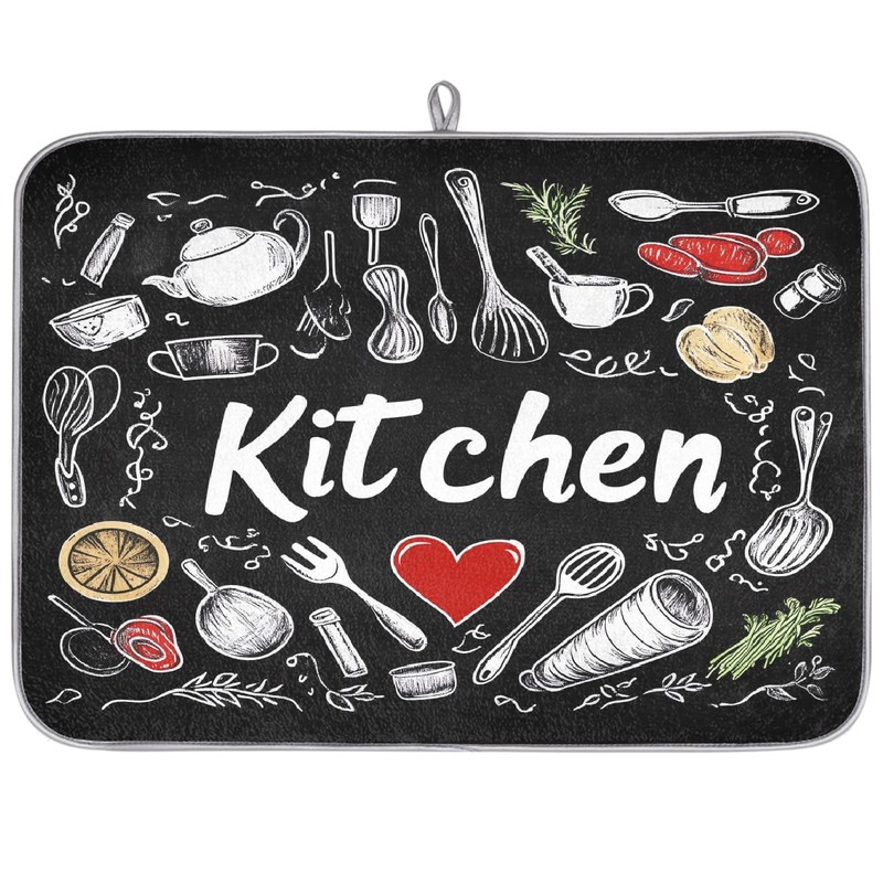YPPAHHHH YPPAHHHH Dish Drying Mat Kitchen Theme Dish Black Large Drying Mat for Kitchen Counter 18x24in Absorbent Dish Drainer Rack Pad, Heat Resistant Coffee Bar Mats Countertop Protector