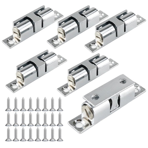 Yqhugbc Pack of 6 Ball Catch Double Ball Catch Door Catch Adjustable Double Ball Catch Door Catch with Screws for Furniture, Cabinets, Wardrobes, Drawers