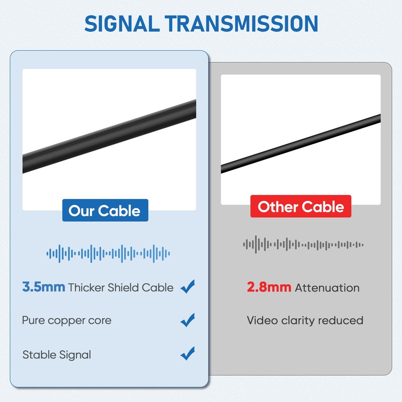 - 【3.5mm Extra-Thick Pure Copper Cable】 This 4Pin dash cam rear view camera extension cable is crafted with 3.5mm thick pure copper wire, 28% thicker than standard wires. This design drastically reduces signal loss and ensures crystal-clear video, especially in long-distance transmission.