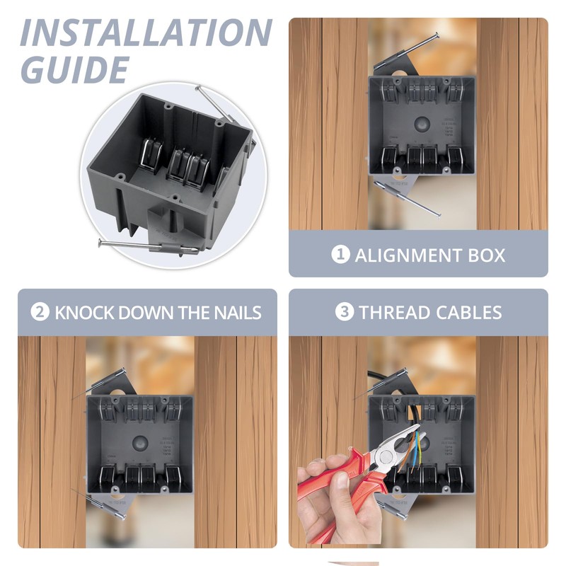 - 【Easy installation】:Electrical outlet box has fixed nails, is mounted on the wall for better wiring, includes cable clamps and is easy to install.