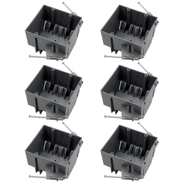 YQSIYU 2 Gang Electrical Box New Work,32 Cubic Inches,Remodel Electrical Box,Gray Electrical Outlet Box for Drywall,6 Pack.