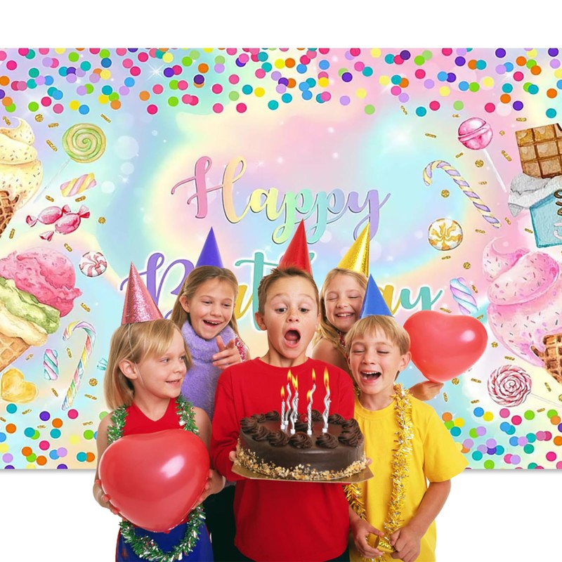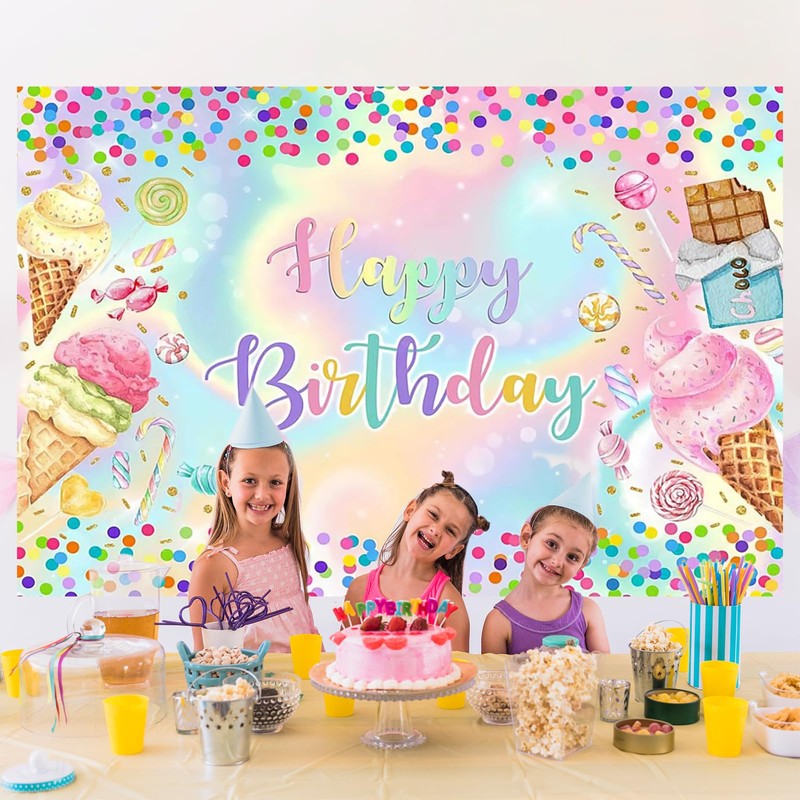 - Candy Ice Cream Theme Party Supplies: The happy birthday banner is designed with summer ice cream elements, such as ice cream, candy, lollipop, chocolate and more, which will add a colourful, imaginative, sweet and fun party atmosphere to your ice cream birthday party.