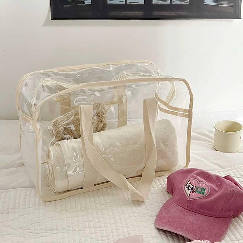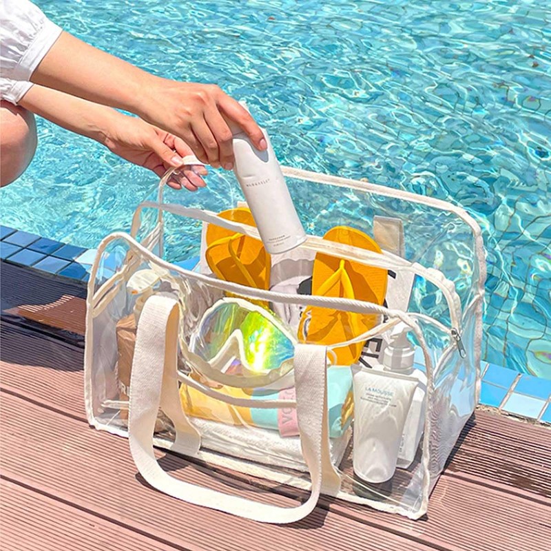 - Waterproof and High Quality Transparent Bag: Made of waterproof PVC material with precision sewing technology, the fabric is durable. No need to worry about the items inside the bag getting wet even in rainy days. In addition, the transparent design allows you to see the contents of the bag at a glance. You can use it in the pool, spa, camping, gym, hot spa and more