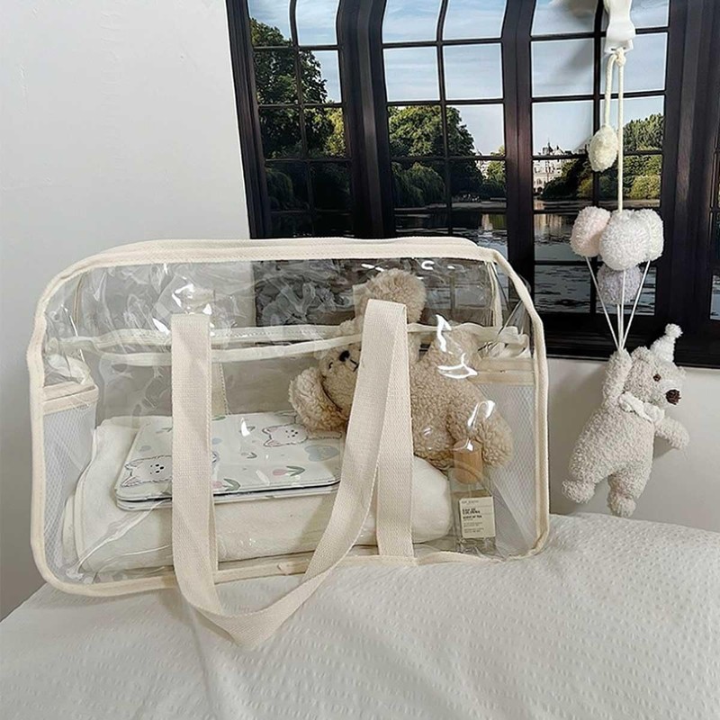 - (Excellent Practicality) This bag has a simple appearance and is also a great design. The body of the bag is clear, so you can easily find what you need at a glance. Mesh pockets on the side of the bag meet your various storage needs and can hold an umbrella or drink The transparent bag has a 2-way design that can be used as a shoulder bag or a handbag, making it very easy to use