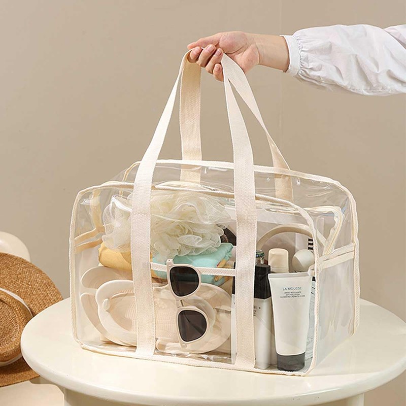 YQWIN Transparent Bag, Plastic Bag, Zipper Included, PVC Material, 2-Way, Handbag, Shoulder Bag, Large Capacity, Waterproof, Beach Bag, Pool Bag, Travel Bag, Toiletry Pouch, Storage for Changing