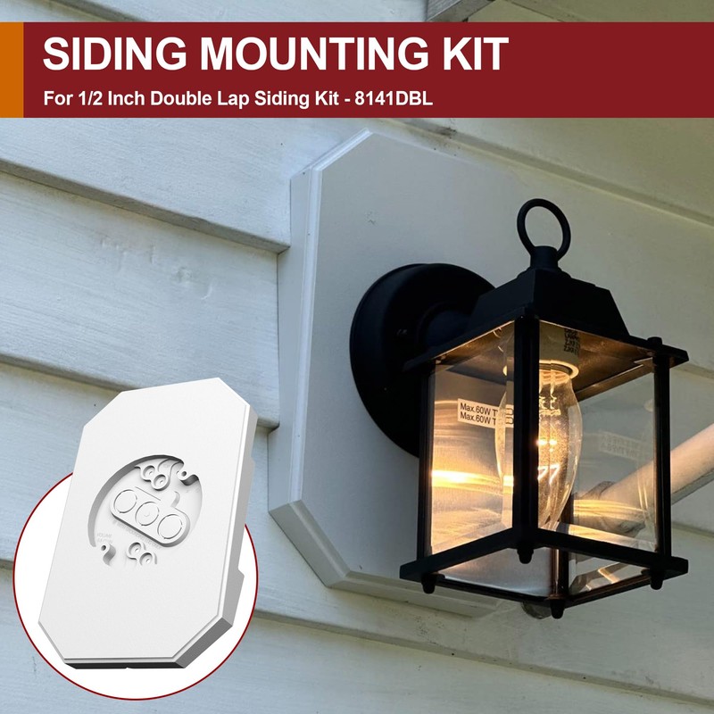 - Compatibility: The built-in electrical box of the Siding Mounting Kit allows for installation on all types of wall panels, including T-111 and HardiePlank overlapping vinyl Siding Blocks. It makes it easier to add new lighting to the existing siding.