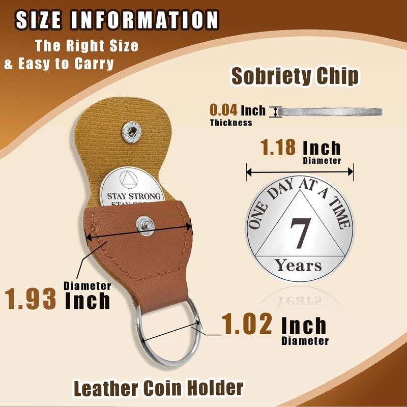 • Material and Sizes: Recovery Chip made of durable stainless steel. Each coin is about 1.18" in diameter and 0.02" thick, with a PU leather keychain about 1.97 x 2.72" suitable for long-term use. AA coins and medallions are lightweight and easy to carry.