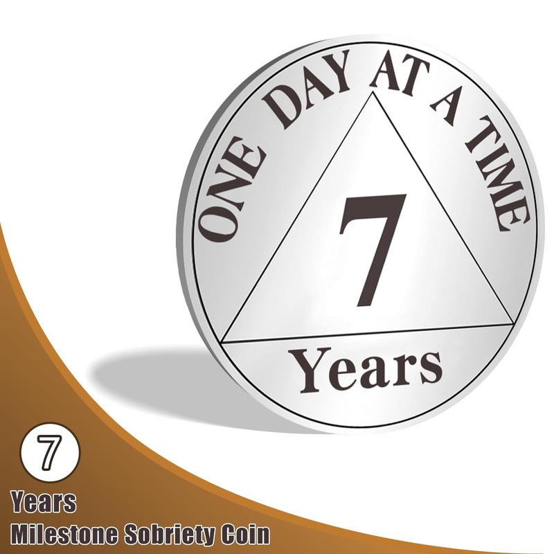 • Meaningful Design: 7 year sobriety coin features ONE DAY AT A TIME. The other side showcases an inspirational sentence: STAY STRONG STAY SOBER. I'm proud of you.This sobriety coin serves as a potent reminder to live in the present, focusing on today's recovery and not worrying about the entirety of the journey ahead