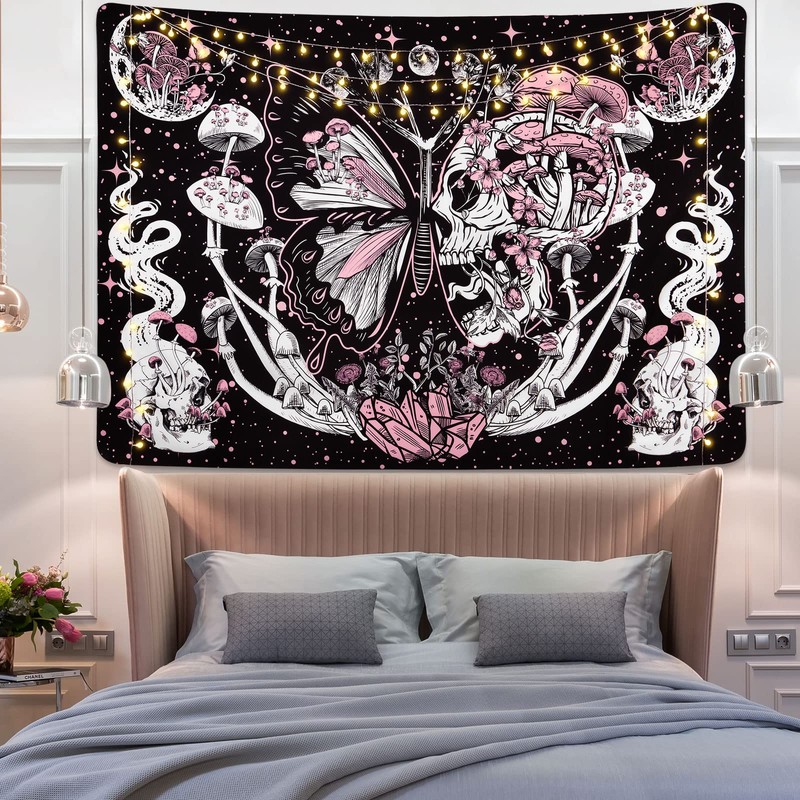 - MULTI USAGE:This is an imaginative skull butterfly tapestry that can be used not only as wall decor for bedrooms, but also as beach blankets, picnic blankets, porch hangings, tablecloths, dorm decorations, curtains and ect.