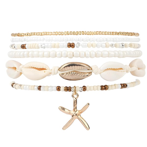 - Shell Bracelet Set: This 6-piece beaded bracelet set features natural shell elements for a distinctive beach-ready look; Each bracelet showcases carefully selected shells arranged in an artistic boho design that complements various outfits