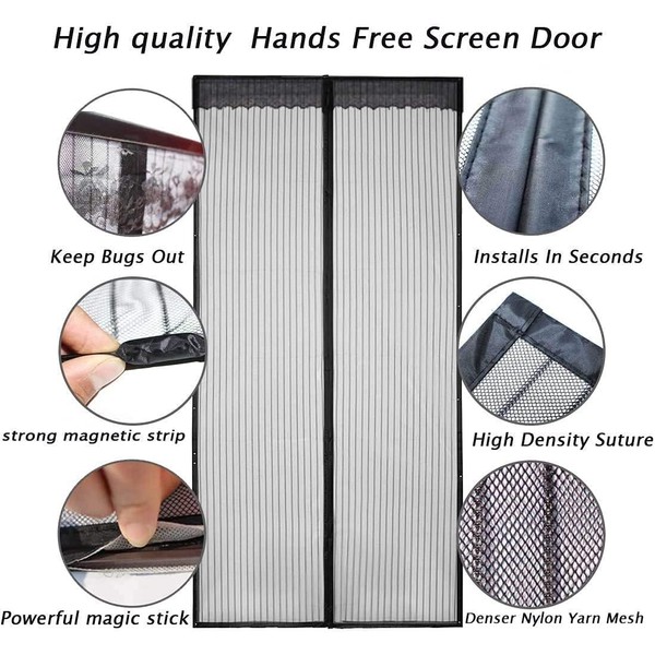- 【Hands Free Screen Door】Built-in coarse powerful magnetic strip,Opens and shuts quickly and automatically, more rapid closure, stronger suction.