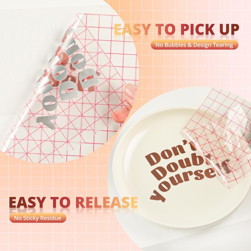 - CLEAR RED GRIDThe 1/2 see through red grid lines makes transfer tape for vinyl easy to measure and cut your vinyl transfer tape without waste. What's more, our transfer tape roll is also tear resistant