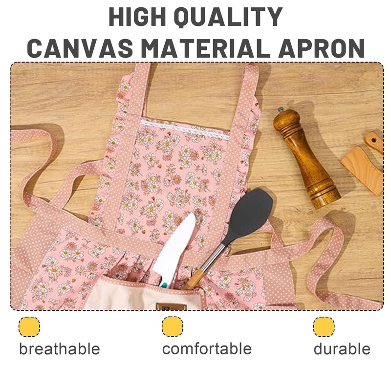 - 【Special Design】: This floral aprons set is crafted with beautiful flower pattern, not just an apron you need in kitchen but also the cutest decor in your kitchen! Say goodbye to dull aprons and transform your Cooking experience into a hit with these stylish aprons