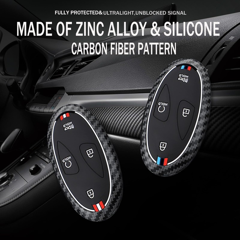 - 【High-quality material】: This key is made of high-quality zinc alloy and silicone materials, the buttons are made of soft silicone, and the shell is designed with exquisite carbon fiber texture. Our new brand of car key cover is stronger, more wear-resistant, smoother to the touch, and brings a luxurious experience.