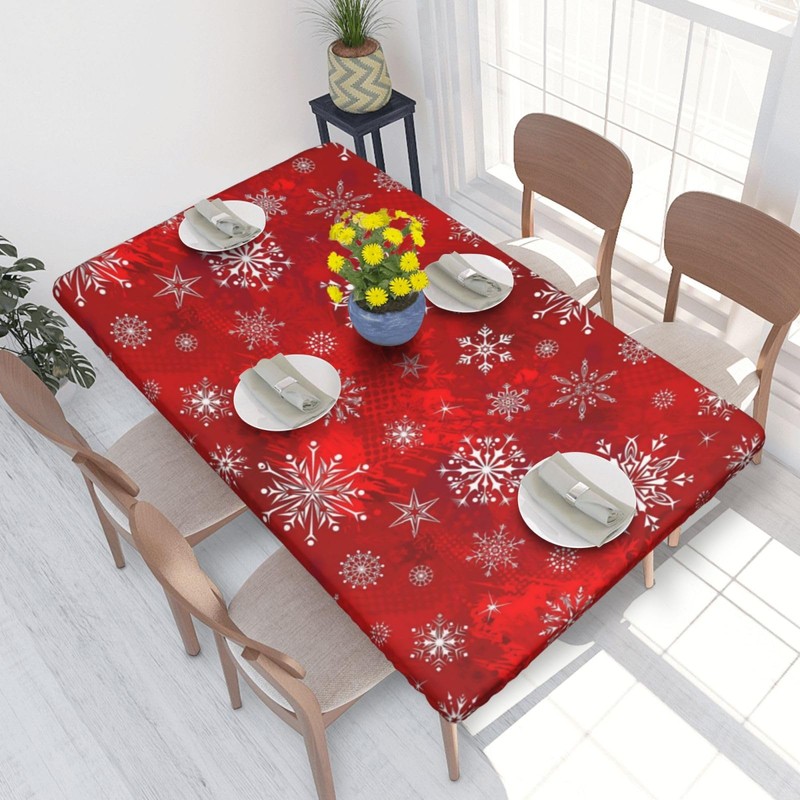 YSBYEIU Red Christmas Snowflake Plaid Tablecloth Reusable Xmas Holiday Table Cover for Rectangle Table 4 Ft 30 X 48 Inch