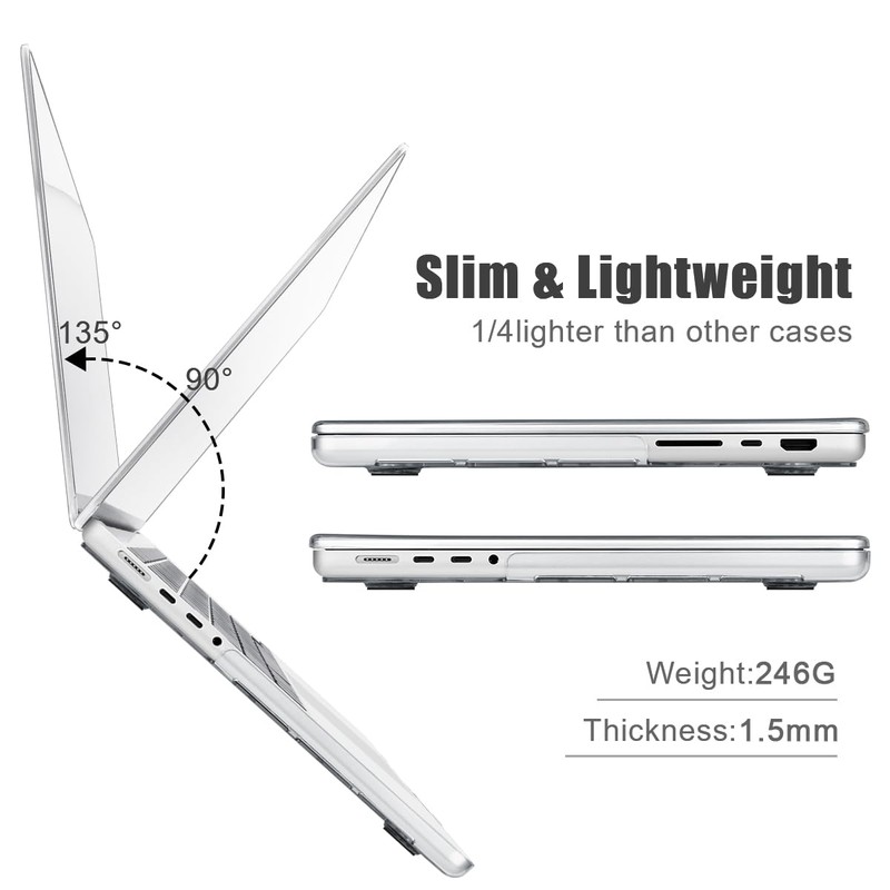 - Design & Function: Two pieces snap-on design, easy to install and take off. The precise cutting design allows you to access all the ports of your macbook pro M4 16 inch. Fully vented for safe heat disbursement. The two rows vent slots at the bottom of the case can easily keep your pro 16 inch m3 device cool. The four raised rubber feet keep your laptop stable and safe.